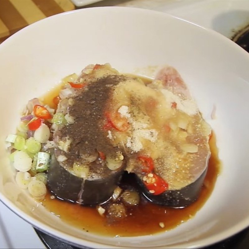 Trộn nhẹ tay để cá thấm đều, ướp ít nhất 30 phút cho gia vị ngấm sâu vào thịt.