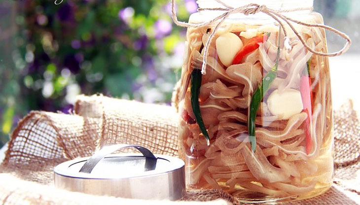 Bạn có thể làm sẵn 1 hũ lớn, bảo quản trong tủ lạnh để dùng dần trong Tết. Mỗi lần mở nắp, mùi thơm lan tỏa khiến ai cũng khó cưỡng. Món này cũng là lựa chọn tuyệt vời cho chị em thích món nhậu nhẹ, không dầu mỡ.